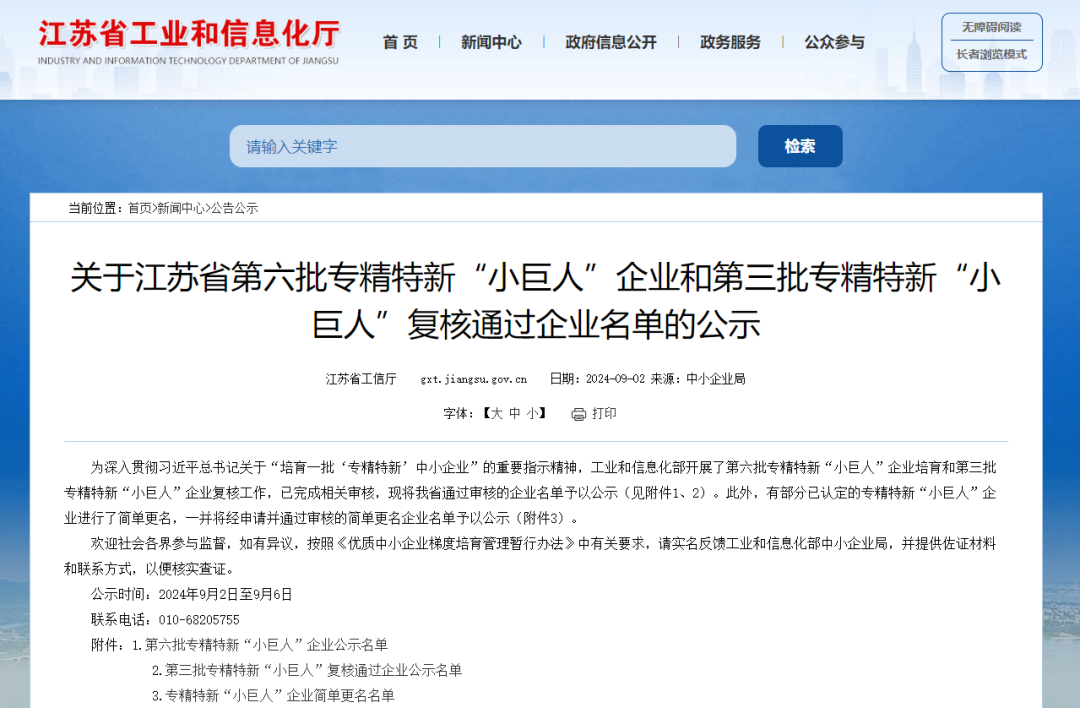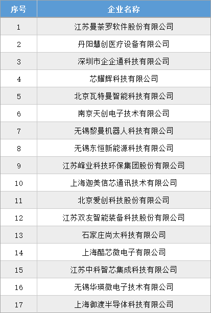 根據(jù)工信部統(tǒng)一部署,江蘇省工信廳于2024年9月2日發(fā)布了《關(guān)于江蘇省第六批專精特新“小巨人”企業(yè)和第三批專精特新“小巨人”復(fù)核通過企業(yè)名單的公示》,其中江蘇曼荼羅軟件股份有限公司、丹陽(yáng)慧創(chuàng)醫(yī)療設(shè)備有限公司、深圳市企企通科技有限公司等17家創(chuàng)投集團(tuán)被投企業(yè)入選第六批專精特新“小巨人”企業(yè)。